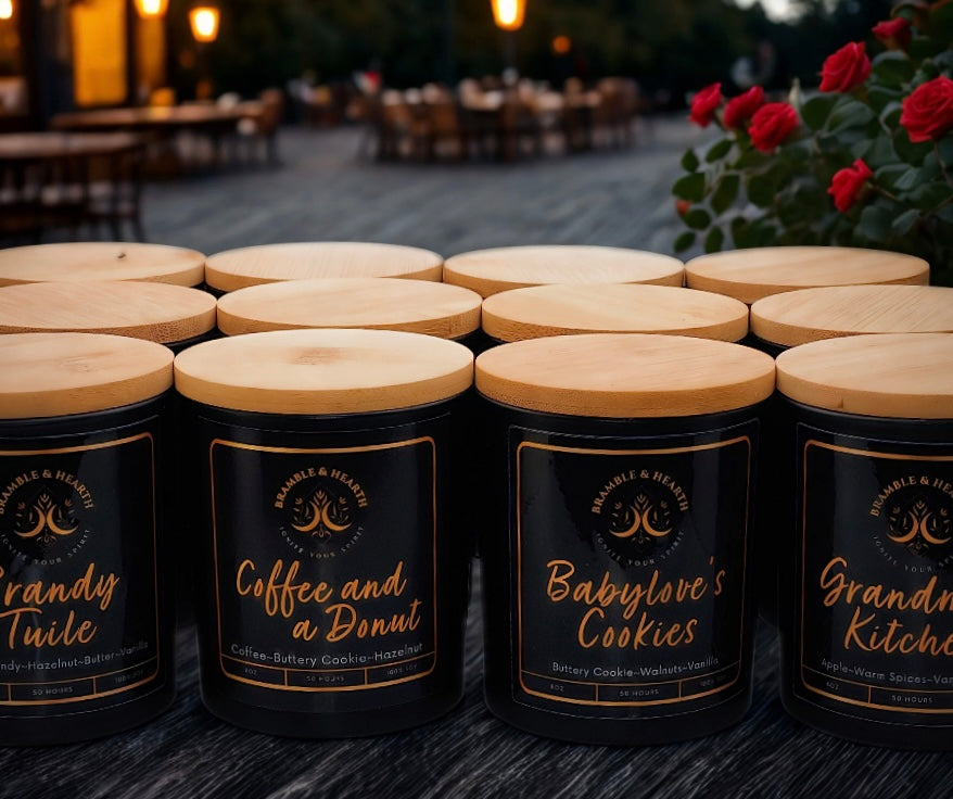 At Bramble & Hearth, we handcraft 100% soy wax candles with care, creativity, and a commitment to quality. Every fragrance is custom-blended in-house to create unique, memorable scents you won’t find anywhere else. Each batch is carefully tested to ensure a clean, even burn, free from harmful additives and full of long-lasting ambiance. We believe in candles that are as clean as they are captivating.